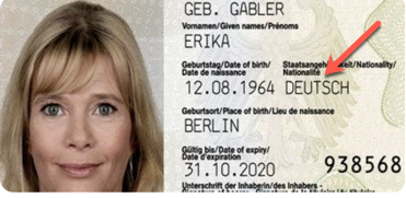 Unter der Bezeichnung "Staatsangehörigkeit" muss jedoch in jedem Ausweis der Staat bezeichnet sein. Im Personalausweis und auch im Reisepass steht "DEUTSCH". Es gibt keinen Staat der "DEUTSCH" heißt.