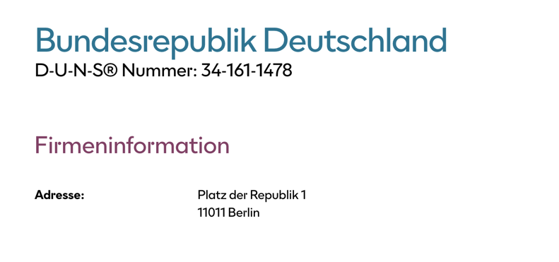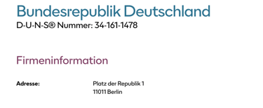 DUNS-Nummer der Firma "BRD" ("Betrüger regieren Deutschland")